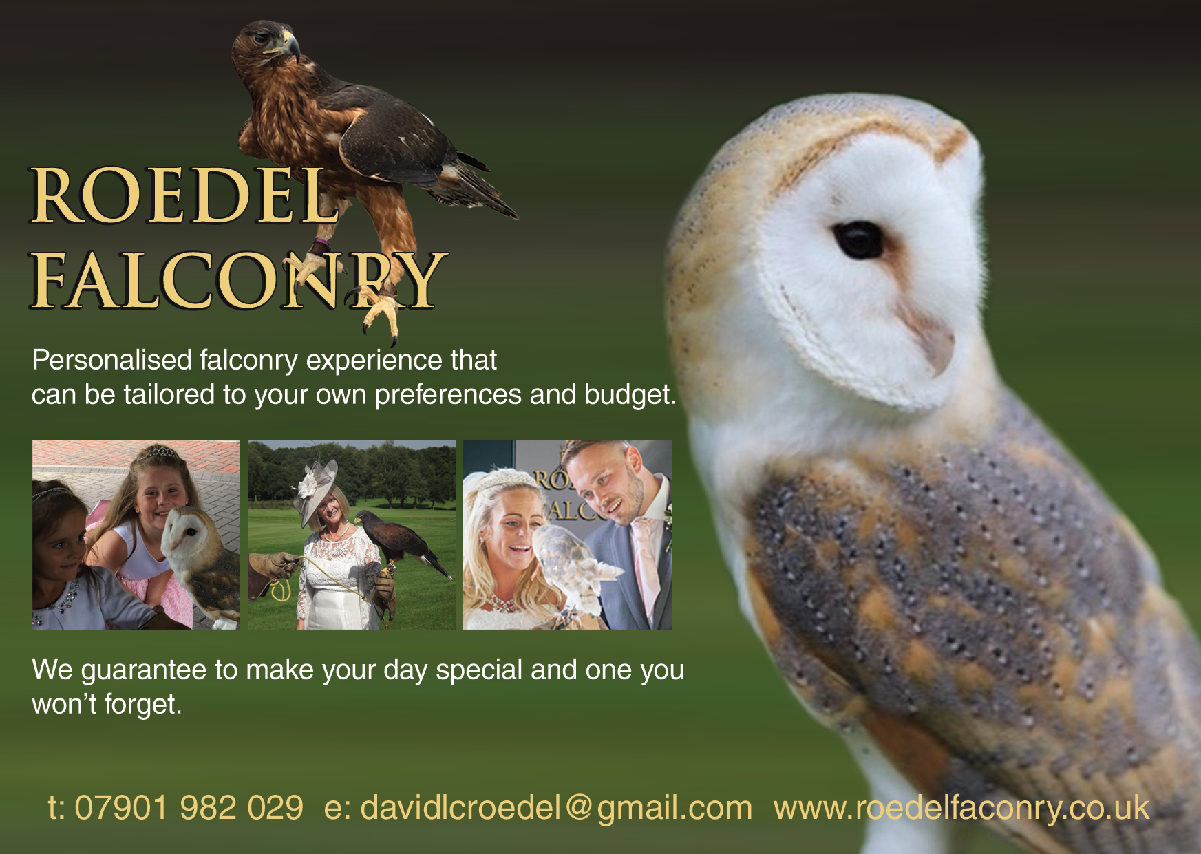 Welcome to Roedel Falconry Experiences. We have over 21 years experience in flying, working with and rearing birds of prey we are excellently placed to help demonstrate to you the beauty and wonder of these amazing birds first hand.
